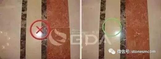 不同颜色的石材用同一种胶或第三种颜色填缝,成品后接缝明显。