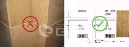 1、前期策划应考虑拼接角度,图纸深化下单时应考虑到位(内切45度左右)。阴角采用搭接式,也可保证通缝。
